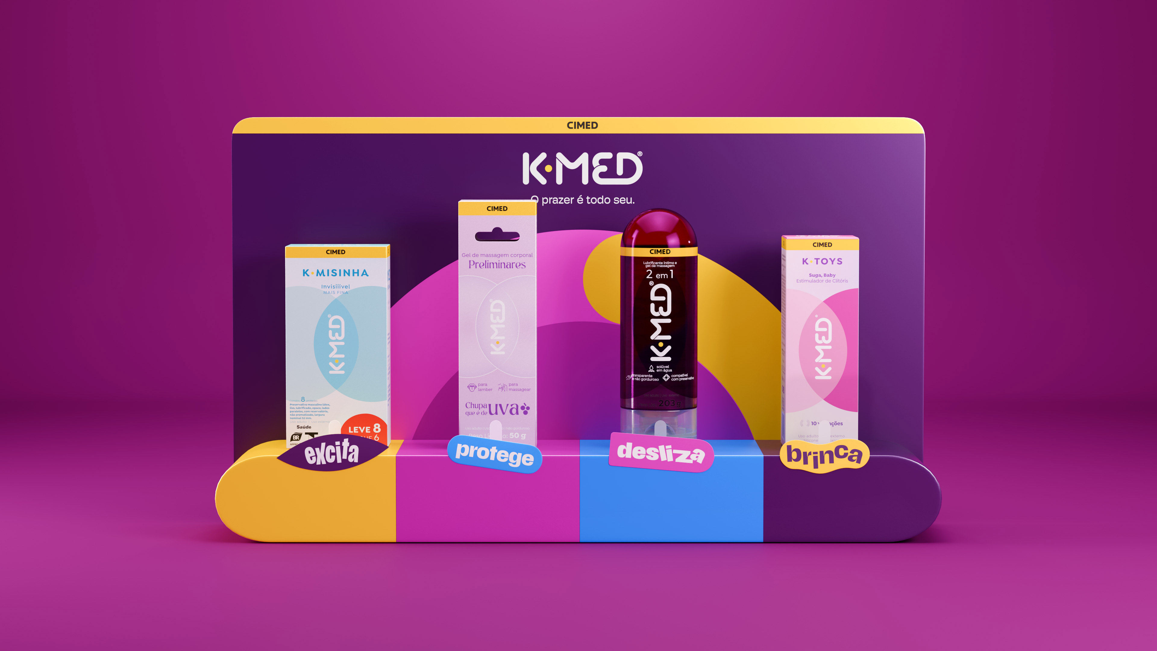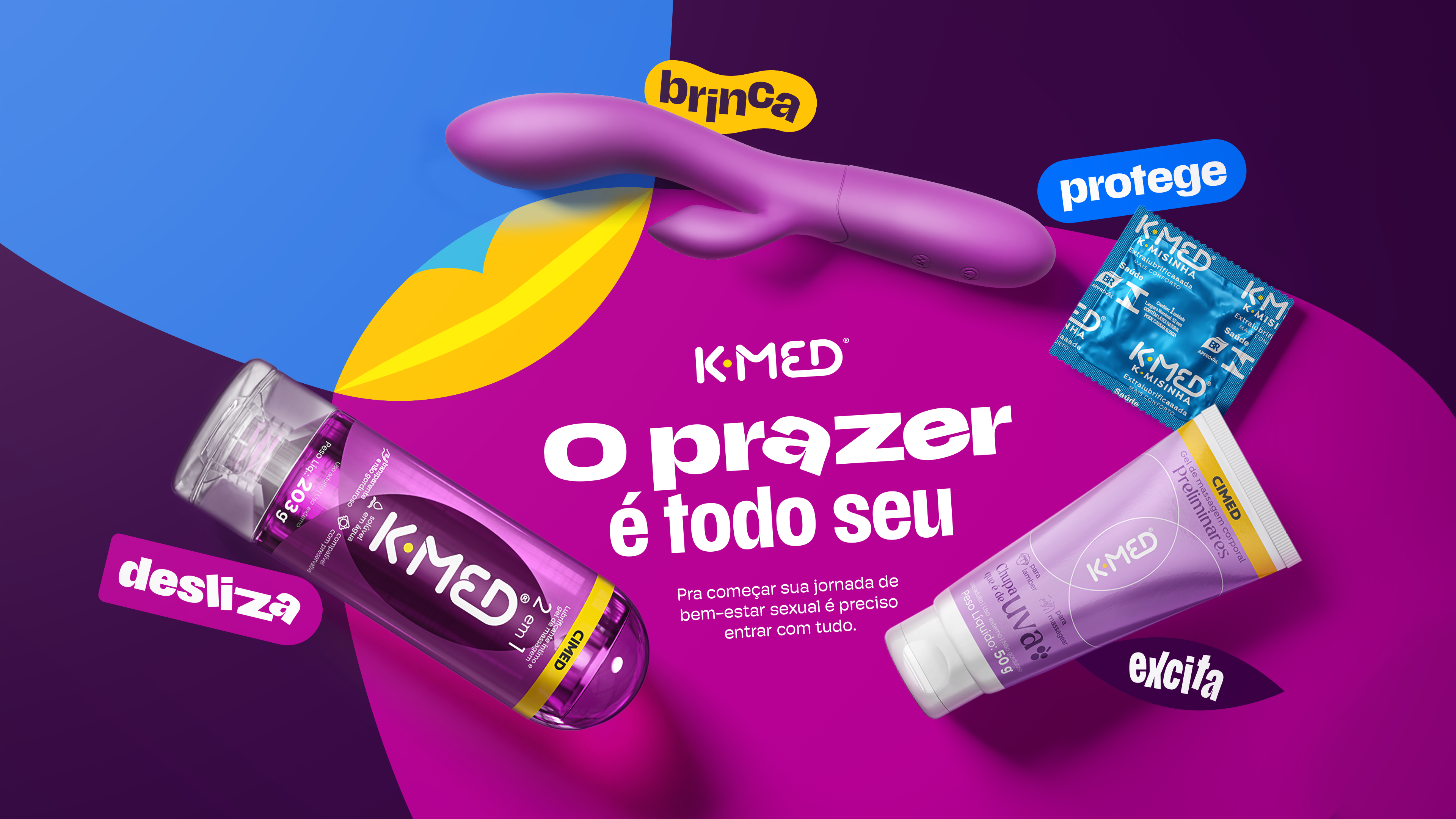 A ousadia está na essência da K-MED. Uma marca que não tem medo e nem vergonha de falar abertamente sobre bem-estar sexual adulto, derrubando barreiras, quebrando tabus e incentivando todos a se jogarem nos seus desejos. Para dar uma apimentada na relação com as pessoas, K-MED se reinventou para mexer com suas fantasias, lançando uma identidade visual irreverente e provocante, que dialoga de forma explícita com a nova tagline “o prazer é todo seu".